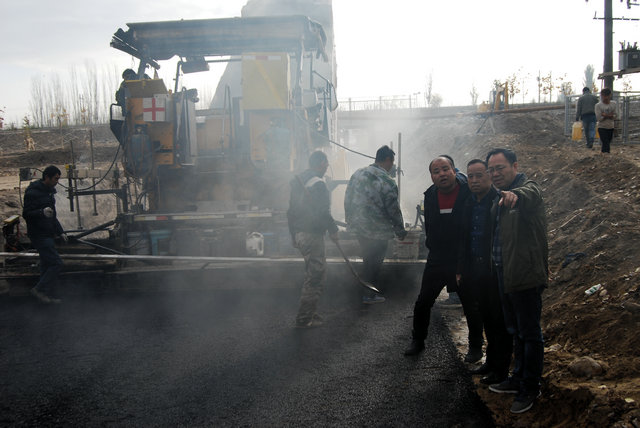 進(jìn)入冬季,南疆莎車(chē)工地依然呈現出繁忙的景象,攤鋪機在隆隆作響,身后的壓路機來(lái)回穿梭。聽(tīng)莎車(chē)快速道路第一標段負責人屈戶(hù)選介紹,按照甲方要求,該項工程要在今年年底交工。目前,主道已經(jīng)通車(chē),余下輔道大約一個(gè)多星期可以攤鋪完,岔路口也在施工當中。劉副總要求項目部加強管理,利用好現有的好天氣,乘著(zhù)大干一百天的東風(fēng),苦干加實(shí)干,把余下的工程完成好,給集團公司交上一份滿(mǎn)意的答卷??粗?zhù)風(fēng)馳電掣的車(chē)輛從身邊馳過(guò),劉副總要求項目部落實(shí)好安全工作,做好道路警示與防護,確保全年的安全目標實(shí)現。