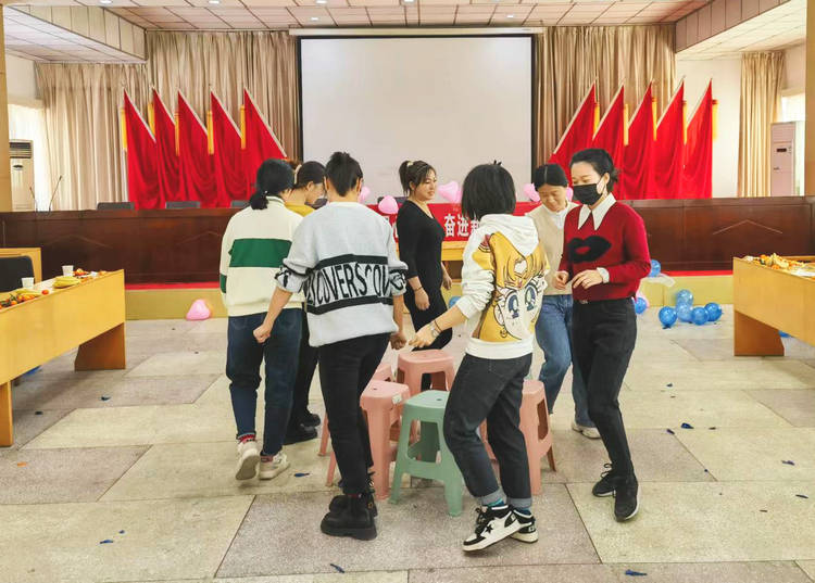 活動(dòng)中,全體女員工開(kāi)展了搶凳子、雙人齊心背氣球、蘿卜蹲等互動(dòng)小游戲,以及徒步爬山。